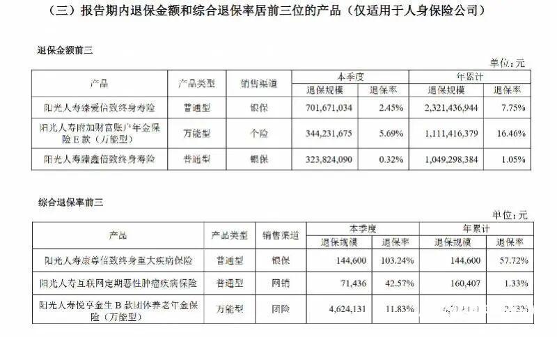 退保率高企则成为另一大突出问题。2025年前三季度,“阳光人寿臻爱倍致终身寿险”累计退保规模约23.21亿元,退保率7.75%;万能型产品“阳光人寿附加财富账户年金保险E款(万能型)”累计退保规模约11.11亿元,退保率16.46%;“阳光人寿臻鑫倍致终身寿险”累计退保规模约10.49亿元。