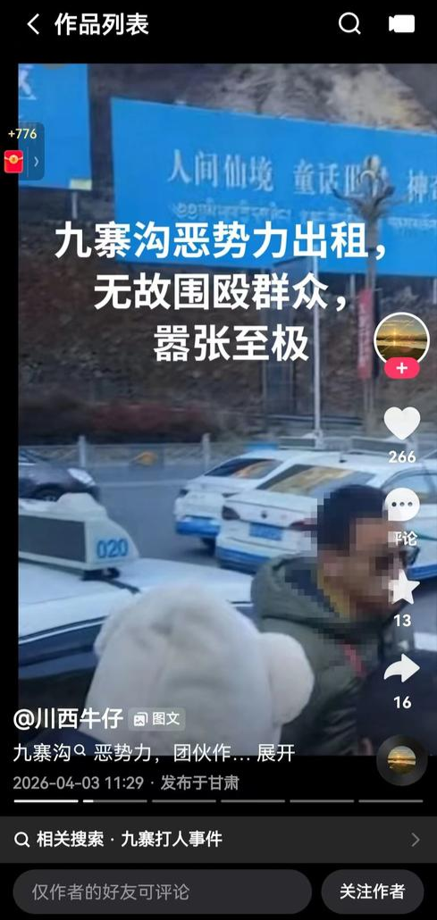 近日,四川阿坝州九寨沟县公安局依法查处一起通过网络散布虚假信息案件。违法行为人乔某某因不满案件办理,用昵称为“川西牛仔”的账号在网络上发布配有“九寨沟恶势力出租,无故围殴群众,嚣张至极”文字的视频,引发不良社会影响。